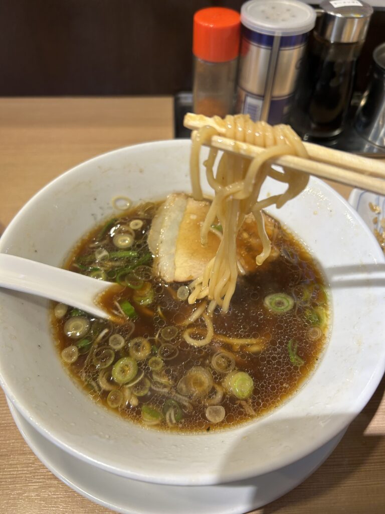 生姜醤油ラーメンは生姜の風味が食欲をそそります。僕はここに追い生姜を入れました。ピリッとする辛さになって僕の好きな味です。