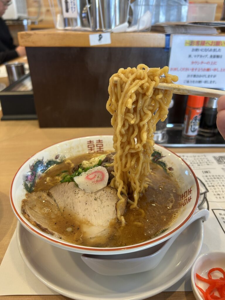 麺は生姜醤油と同じ中細のちぢれ麺です。豚骨ですが、細麺ストレートではありませんでした。
